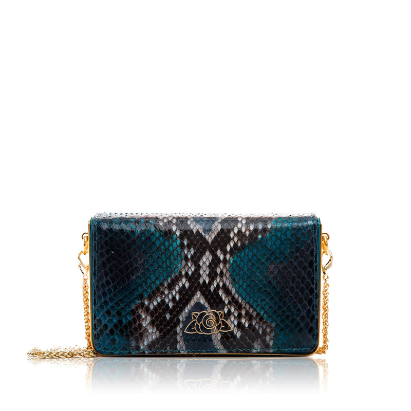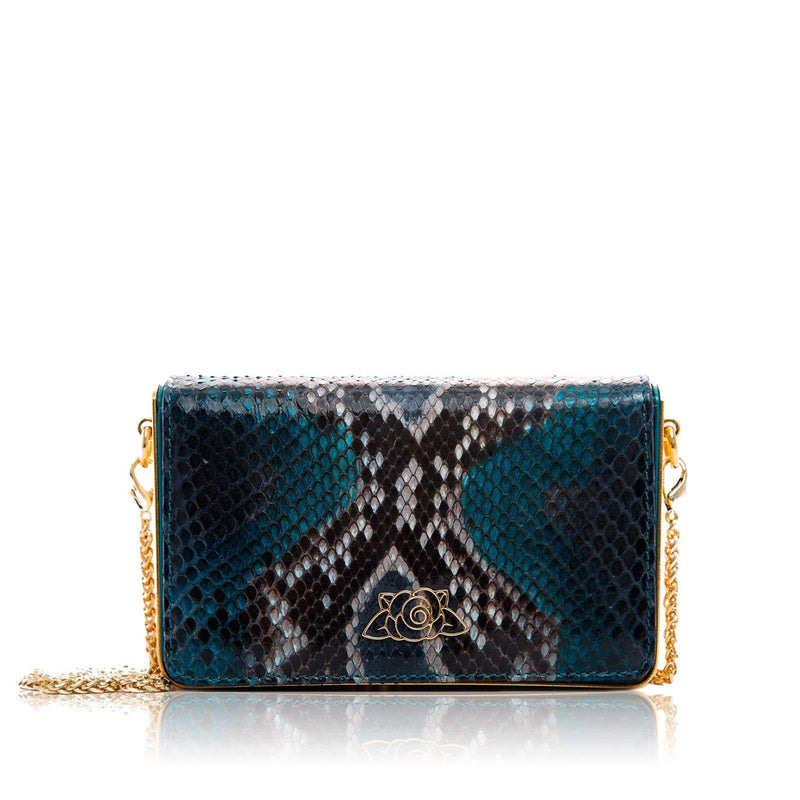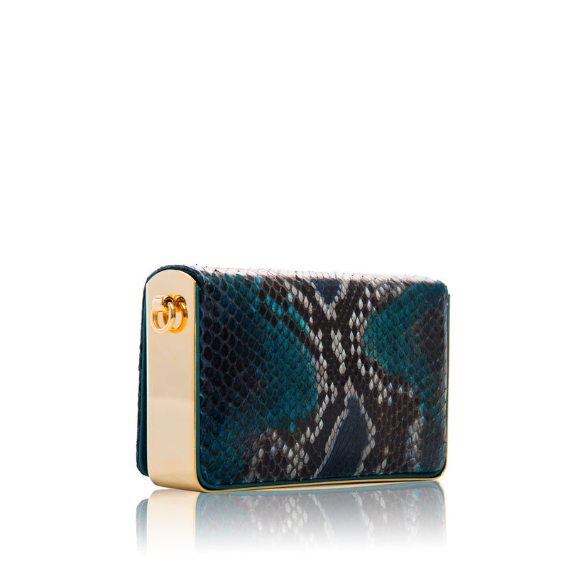 Un precioso clutch realizado en una caja de metal recubierta de piel multicolor.