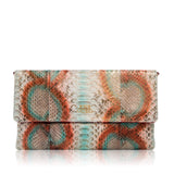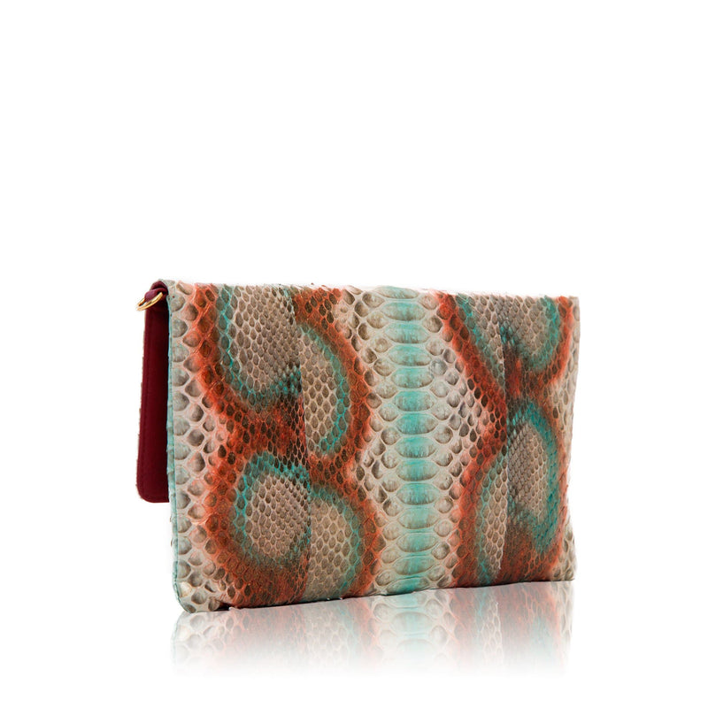A beautiful clutch made of a multi-colour leather embellished with a beautiful tassel.